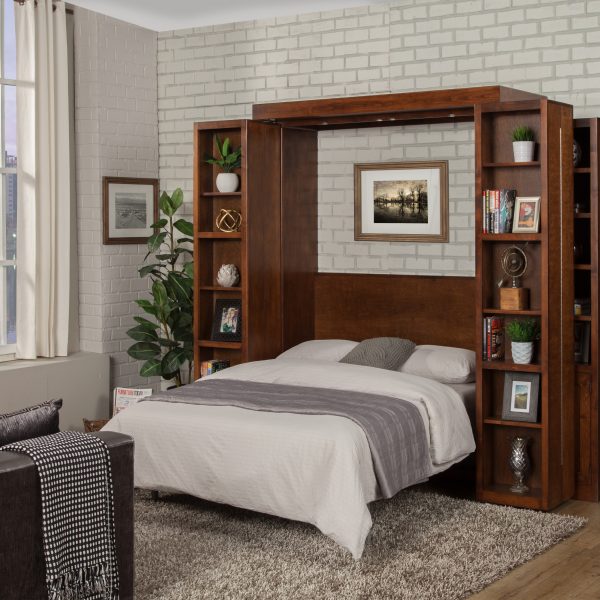 Get organized with the San Marino Library Wall that looks like a bookshelf and converts into a Queen or Full bed.  Using a smooth pivot system design to open the doors, you don’t have to worry about moving any of your decorations while converting it to a bedroom.